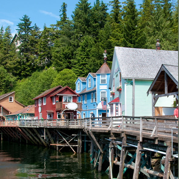 Ketchikan was originally founded as a Native American fishery before growing during the 1898 Gold Rush to the Klondike. Much of the town's colorful past is still evident, both in the city center and especially in the nearby Native American villages, where visitors will be enchanted by colorfully carved totem poles and the fascinating legends that surround them.